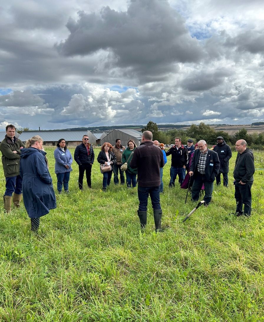 Members of the Oxford and London branches of the Hospital Catereres Association gathered at FarmEd for a farm tour led by Jonty Brunyee. Jonty has 25 years of experience in the sustainable farming and environmental sector as an award winning organic farmer and as a senior academic at The Royal Agricultural University. He has won the National Trust Farming with Nature Award. He is passionate about regenerative farming, sustainable food and knowledge exchange, and is an active member of the Pasture Fed Livestock Association. He is a Nuffield scholar and has studied sustainable farming around the globe.